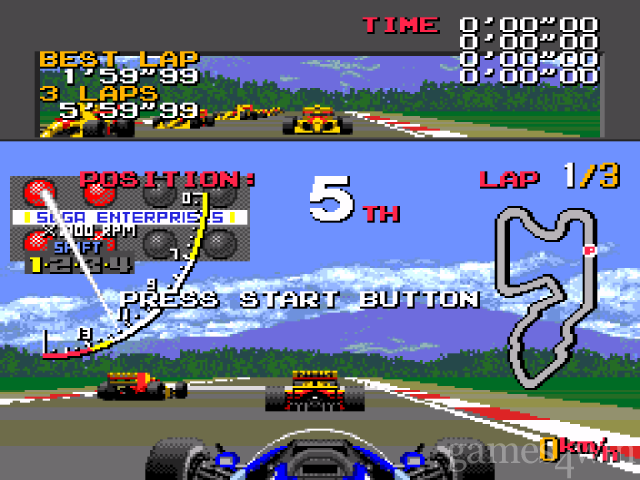 The brains behind the game is internationally renowned Ayrton Senna, 1991 Formula 1 World Champion. Sega drew upon his knowledge of the best race circuits and the best Grand Prix race cars, and created a game that literally puts you in the cockpit. You have a number of options at your disposal. In addition to the "pre-race" options (such as setting the control pad brake and accelerator), you can choose to race either with an automatic transmission, or a manual transmission with four or seven speeds.