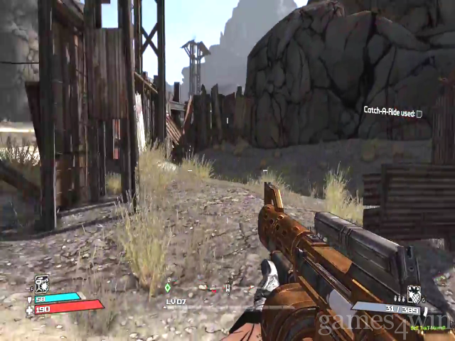 At its core, Borderlands is a shooty-shooter game with some weighty RPG bells on. You'll collect XP for milling through enemies, and level up your proficiency in weapons by upgrading your science-fiction looking hardware implants.