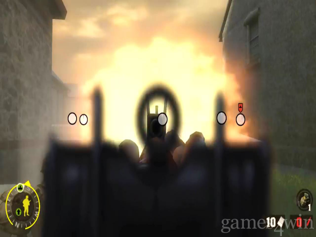 However, while all this gives the game a nice gritty edge, the thing that really separates BIA from other WWII shooters is its focus on real combat tactics. Developer Gearbox was keen to avoid the 'one-man army' approach that afflicts so many other games, and so places you in command of a squad of US troops, dubbed 'Baker's Dozen' after your alter-ego Matt Baker. Actually, you're just a grunt at first, taking orders from your platoon leader, but soon enough you have three men under your control, then three men and a tank, then eventually two teams of three. And while lone wolf heroics will get you through the first few missions intact, you soon find that these human resources are the key to your survival.