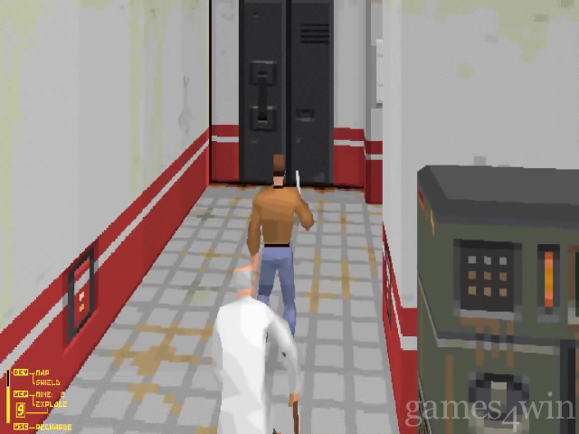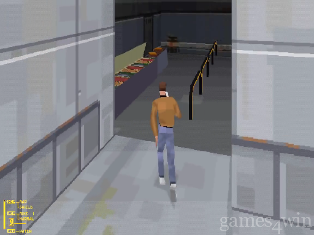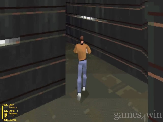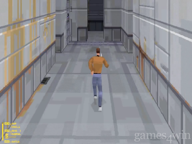 It's not all rolling around the floor trying to make big knee holes in your jeans, scuffing your white trainers and pretending to be Bruce Willis. No, there's flying bits in it too. About two thirds of the way through the game you'll come across a bit where you jump aboard a hover ship type thing in which you have to navigate your way through a rather difficult twisty-turny tunnel-like bit. A bit later still (quite near the end in fact) you jump aboard your speedy hover ship once more and have to shoot things as you fly down another tunnel type bit. It's a dirty (difficult) job, but someone's got to do it.