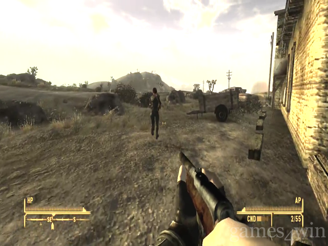 You play a courier who delivers parcels across the wasteland (a hint someone at Obsidian is a fan of bad Kevin Costner movies). Unlike previous Fallout games, you're not a nameless Vault Dweller, so there's no protracted character generation. Instead, you begin the game by being shot in the head and dumped in a shallow grave. You're rescued by a friendly robot named Victor and taken to the town of Good Springs. From there you begin a quest to learn who tried to kill you and what was so valuable about the package you were carrying at the time.
