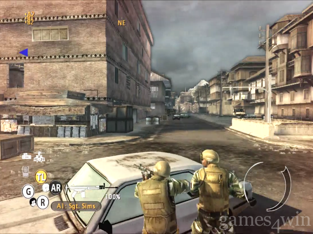 There'll be vehicles to order about as well, plus buildings within which you'll battle and set up sniper positions over the surrounding streets - everything an armchair general could wish for. As mentioned earlier, the storyline revolves around a key bridge that lies over a river that separates two warring factions, one in the north and the other in the south, and playing as US and Coalition (ie plucky Brits) who aren't popular with either party. So once more you're in 360-degrees of danger, but you can bank on Ten Hammers bringing the formula forward a few paces - while at no stage walking into a wide open market square and being shot in the head.