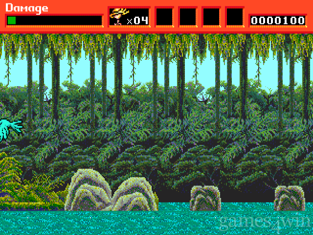 MIKE: Greendog was a real challenge due to his physical structure. The game's artists Maureen Kringen and Doug Nishimura worked hard to capture his quirky looks. In doing so they created one of the largest main player characters to appear in a 4-meg cartridge.