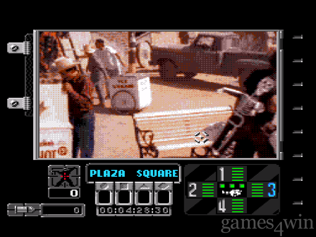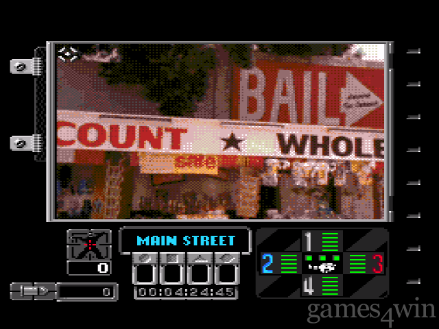 You control battlecams that watch on key areas of the town. Eachbatdecam is a combination camera and state-of-the-art particle-beam disrupter. You use the weapon to stun the aliens and hope that your agents on the scene can collect clues that tell you where the Reticulans’ weapons cache is located. Find their weapons and you can use them to permanently stop their creators.