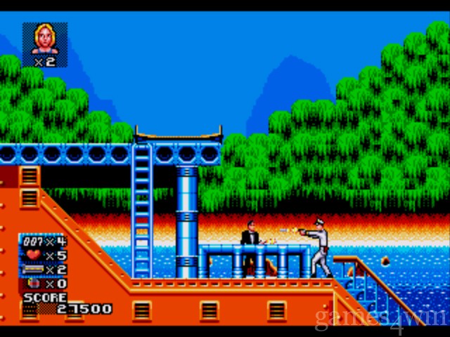 You have your trusty Walther PPK and you must go through a few levels with a villian at the end of every level. Such as in the first level, at the end you get to fight Jaws. To put it simply this game is basically a side-scrolling shoot-em-up. You can find women who will give you an extra life, and many other things.