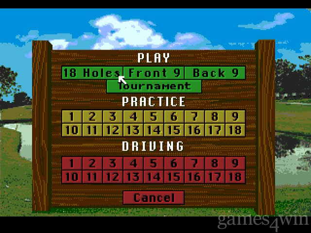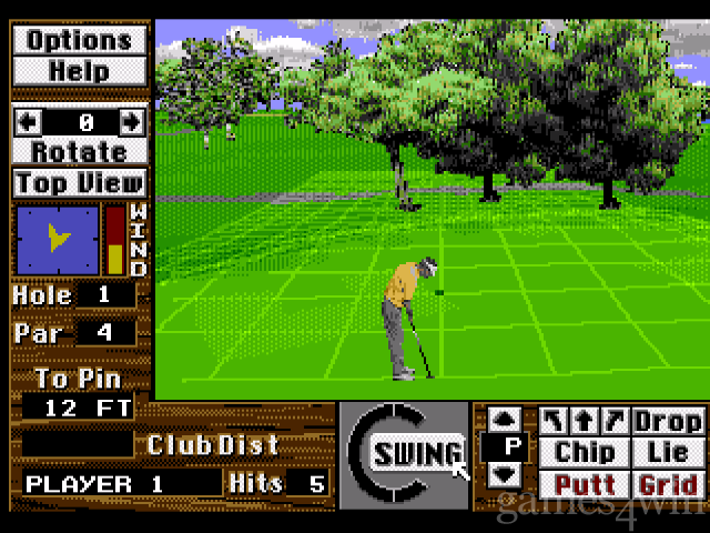 In a jam? Not sure how to pick a club, aim, or swing? Lose the manual? Click on the Help bar in the upper left comer of the screen for timely advice.