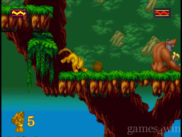 - Bounce the rocks back to the gorilla by using Simba's Roll.