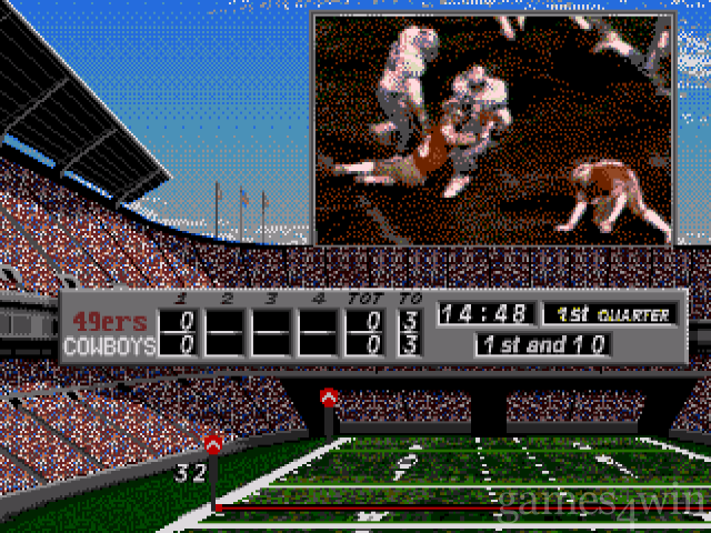 You set the plays, select the quarterback and make the calls. Choose from blazing full-screen football action, window-size with the field visible or a random combination of both. Either way, you end up with spectacular live footage from NFL Films™. Make the coaching decisions about running, passing and defensive plays against the computer or a human opponent. If things aren't going well for the 49ers, pull Steve Young and put Joe Montana on the field. Set up a Hail Mary and watch Montana throw deep. The outcome depends on the defender's play call!