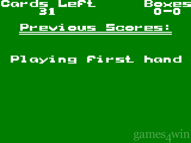 The object is to match up three or more cards in a meld. These can be cards of equal face value or sequential cards of the same suit. Options let you select the maximum value of allowable dead cards (not in a meld), bonus points for gin and under knock-ing, and the number of boxes (100 points or more) needed to win the game.