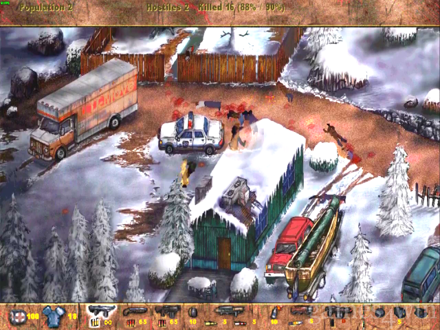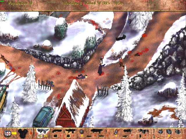 Loosely borrowing single and multiplayer ideas from Quake, ten weapons are available and you can duck and strafe to avoid enemy attack. It could have been a good game, but it loses marks simply because of the grossly gratuitous violence and uninspiring level design. Ultimately it's just too samey. You shoot anything that moves; unarmed pedestrians run about and get caught in the crossfire; there are lots of big explosions; you finish the level and then go and do it all again. Although Postal delivers on the odd occasion, it doesn't quite push the envelope through the right box.