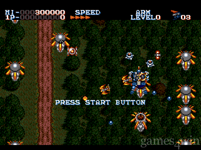 - Collect as many power capsules from blasted enemies as quickly as possible to build your normal shot strength.