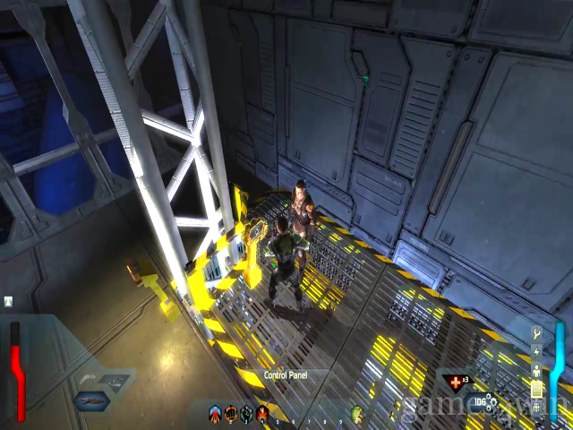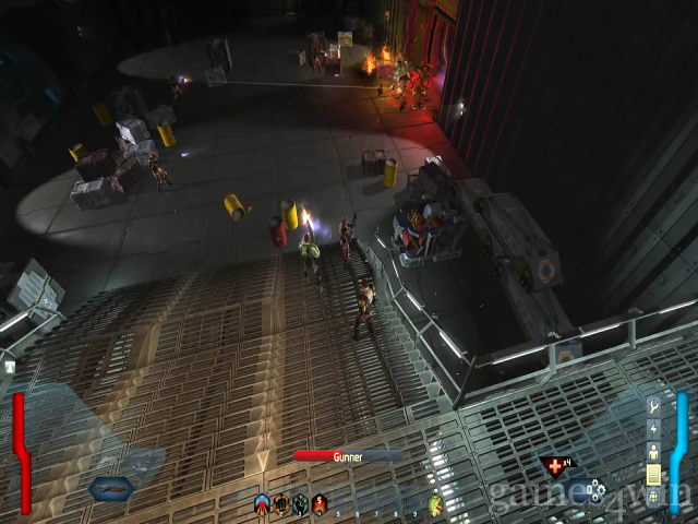 You can make yourself 95 per cent metal, but if you want to take the challenging human route, you can upgrade your pet robot, HR-V. The largely autonomous party members and formation tactics of Dungeon Siege have been replaced by a trusty helper robot, which gives him a chance to develop more personality than your typical hired mercenary.