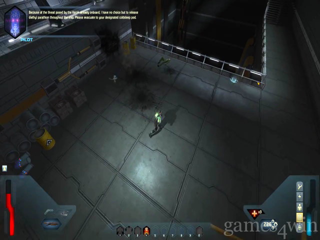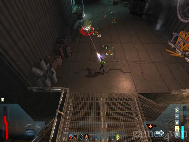 For the titular semi-sequel to Chris Taylor's previous hit Dungeon Siege, the buzzword that dominates the game's design is "streamlined". This is a word that's both promising and suspicious; in the right hands, streamlining can result in effortlessly intuitive gameplay that's satisfying in its cleverly concealed depth. In the wrong hands, you end up with an experience that is both patronising and unchallenging. Character development is the most obvious area where simplicity has been imposed. Brought cleverly into the sci-fi genre, the upgrade materials that fall from your enemies' bodies replace both currency and experience from Dungeon Siege. Take this accumulated wealth to an upgrade bank and you can turn it into cybernetic upgrades, or have the machinery convert your scrap into useful items, like health packs. This is neat, it fits the canon and if you blur your eyes at the idea of insects shitting out the raw materials for health packs, it's a perfect way of boiling down the labyrinthine skills and requirements of games like WOW.