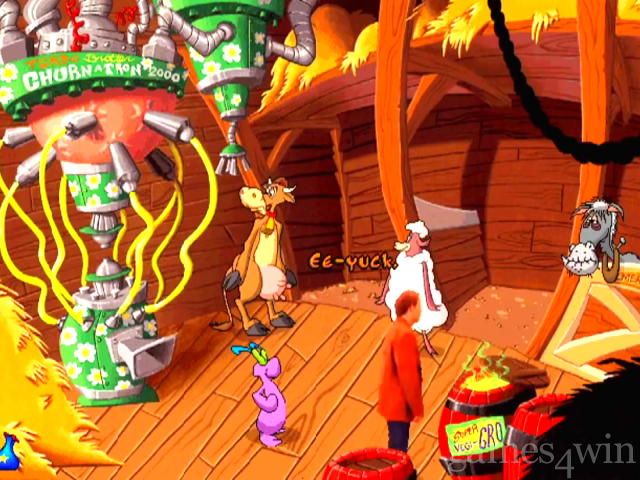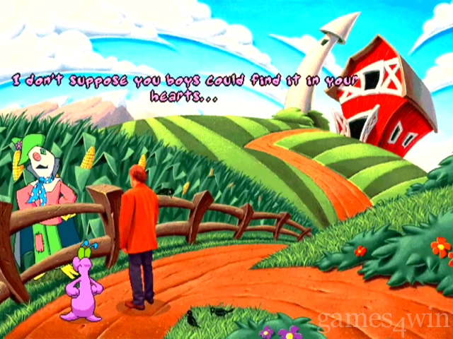 If anything, Toonstruck is something of a spiritual successor to Sam & Max. It takes the same cartoon-inspired ideas and characterisations and throws in a massive amount of visual humour. It also somehow manages to appeal to people on different levels in the same way that things like CThe Muppets' and CThe Simpsons' can (which is ironic because the bloke who Homer Simpson's voice is one of the voice actors used here). There's the basic, silly, slapstick stuff that kids will enjoy, but underneath there's some seriously rude adult references that are thrown in so subtly that some people just won't notice. Things like cows dressed in leather S&M gear with their udders pierced whilst being whipped by a sheep dressed in spandex with little propellers attached to its nipples. You know, subtle stuff like that.