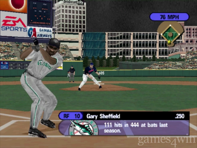 It has everything the other decent EA Sports games have: the graphics are up there with those in NHL; the sound effects have similarly flowing play-by-play commentary, stadium noise and all that other stuff; and there's shitloads of gameplay options. As well as the usual Exhibition, Playoff and Full Season games, you can make up a Tournament or just play j a quick home-run-hitting competition (if you fancy venting a bit of spleen by whacking a ball about like it was Anthea Turner's head), plus the usual network and modem play.