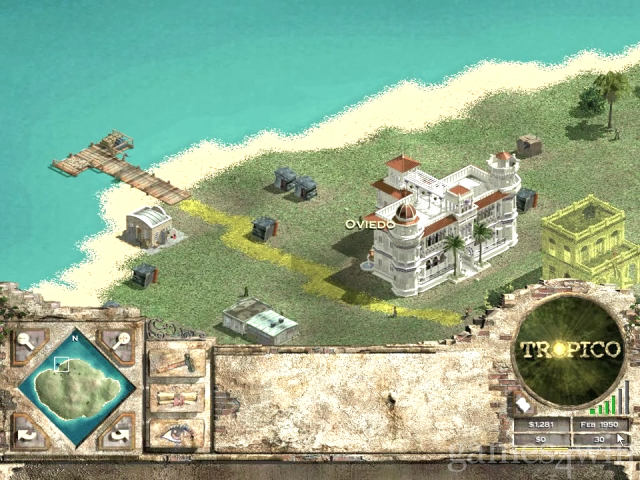 So what's the problem? This has all the makings of a fantastic game... Well, just like the Radio Controlled Clock, what looks great on paper is a disappointment in reality. And the crux of the issue is the technology used to create the game. The developer, PopTop Software, shot to fame in 1999 with the utterly fantastic Railroad Tycoon 2. A tile-based, four-view isometric game in which the aim was to create a thriving country by linking up various industrial centres with the local population. Three years on, and Tropico bears more than just a passing resemblance to its erstwhile big brother. Four-view isometric, tile-based and frankly when compared to games released in 2001, looking very old and tired.