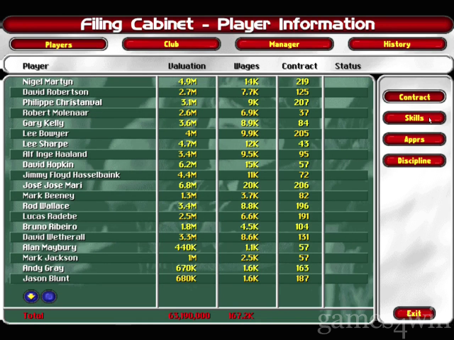You still have that weird skills-improving thing, where you spend 23 weeks getting someone from 66 up to 67 for passing, then they get bored and want to do something else. And since there are limits to a player's ratings according to the division he's in, this means there's no point in buying a lower-league player. At that rate of improvement you'd have them up to Premiership standard just in time to cremate them. You also have to wait about in the hope that a coach becomes available who can actually do what's needed for the team - which gives you the same regretful feelings of chronically wasted time that you get when you watch a Channel Five chat show.