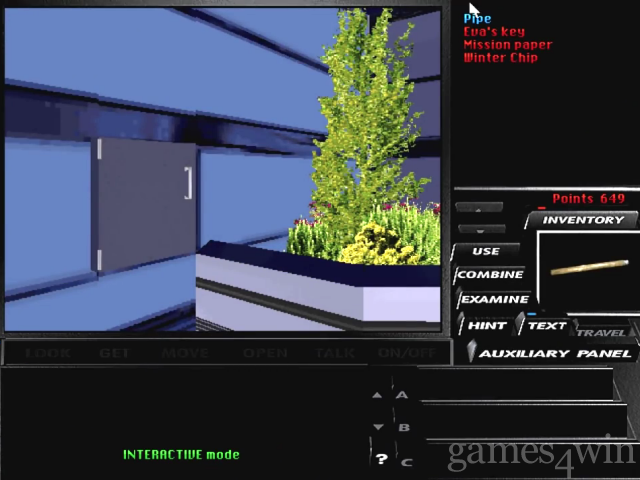 As for the gameplay, well the puzzles are standard fare. You'll need to use certain objects at certain locations at certain times, and displace objects to reveal secrets. Move the shield and it reveals a switch, flick the switch and it turns off the laser beam - you know the sort of thing. Points are gained for getting things right. Hints are available, although using these will cost you marks.
