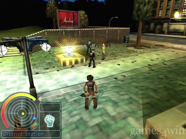 So, turbulent urban cityscape; a lethal world of anarchy and confusion; shaven-headed gangs roaming the streets shooting pensioners for buying too much cat food - that son of thing. In you come - in your role as the aforementioned cool black chickster - to set the world to rights, sort out the gangs and get home in time for Old Men Behaving Badly. You find yourself in the middle of a revolutionary three-dimensional world - basically, it all takes place in a living city, with stuff going on around you in real time: slobs drop litter; leaves drift to the ground; pigeons wander about trying to give people psittacosis. And so on. You have complete freedom to explore every area of the city, from buildings and rooftops right down into the sewers. You can even ride on the subway, steal a motorbike and, in later missions, make use of a hang glider. There are weather effects -rain, fog and snow - and missions take place during the day and night.
